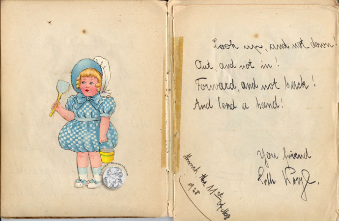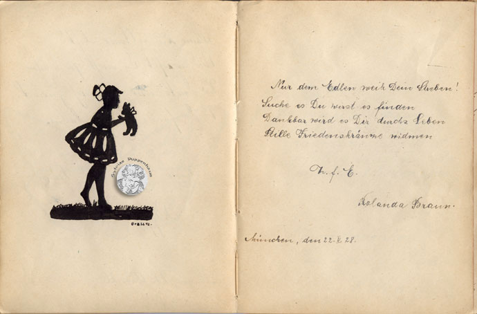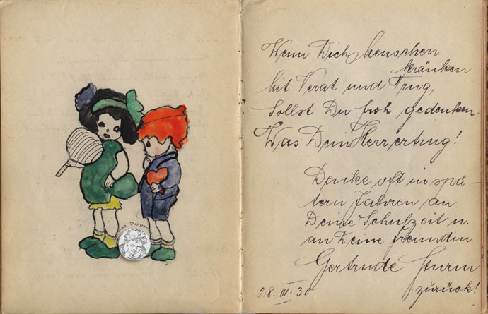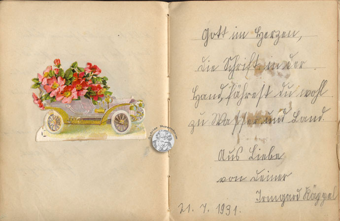 Poesiealbum mit Bildern, Zeichnungen, Scherenschnitten und Oblaten - Einträge aus den 20er- bis 40er-Jahren