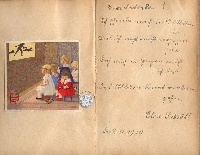 Antikes Poesiealbum mit Oblaten, Bildern und Zeichnungen und mit Einträgen von 1918 bis 1920.